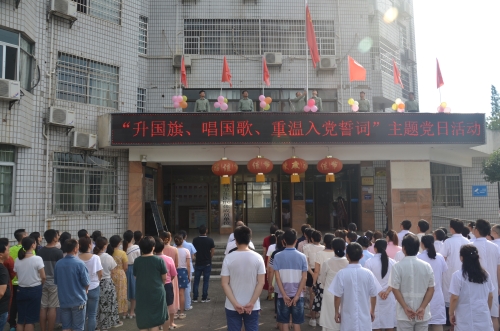 根据市民政局关于做好庆“七一”有关活动的通知要求,为庆祝建党97周年,进一步加强党员队伍建设,发挥基层党组织战斗堡垒作用,经院党总支研究决定,组织医院党员、职工100余人于2018年6月29日上午在院门诊大楼前举行了“升国旗、唱国歌”和“重温入党誓词”主题党日活动。 活动由纪检员兼工会主席刘宁同志主持,党总支书记魏云同志、院长王丽群同志和其他班子成员、全体党员、部分职工一起参加了此次活动。8点整活动准时开始,首先举行了“升国旗、唱国歌”仪式,伴随着雄壮豪迈的音乐,现场的党员、职工饱含深情地大声唱起国歌,鲜红的五星红旗在医院上空冉冉升起。接着,党总支书记魏云同志带领全体党员举起右手,庄严宣誓,重温了入党誓词。最后,魏云同志表示此次活动既是庆祝建党97周年的主题党日活动,也是激发全院党员、干部、职工爱党、爱国、爱院情怀和增强医院凝聚力的重要形式,希望全体党员要时时刻刻以一名共产党员的标准严格要求自己,并号召全院干部职工以良好的精神面貌、饱满的工作热情、严明的组织纪律共同推动医院各项工作更上新的台阶。 人事科(陈星)